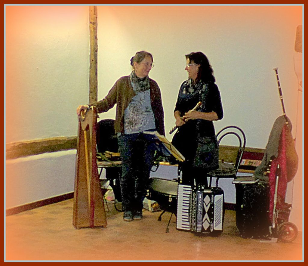 Nachmittags gibt es Bretonische und Französische Tänze zu lernen, unter Leitung unserer Tanzmeisterin Ange Hauck können auch Anfänger sofort mittanzen. Die Live-Musik dazu spielen Irronymus Bock, das sind Ange Hauck und Christel West.