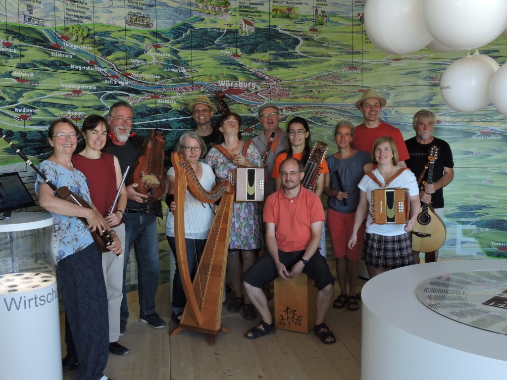 Bei der bunten Mischung aus Reihen-, Gassen- und Paartänzen könnt ihr gleich einsteigen. Die Musikerinnen und Musiker sorgen für abwechslungsreichen Sound.